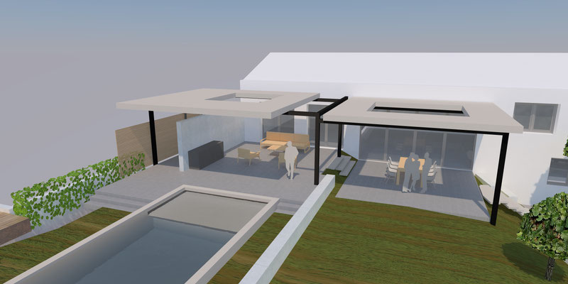 - Neubau einer Terrassenüberdachung und eines Aussenpools an das bestehende Wohnhaus.